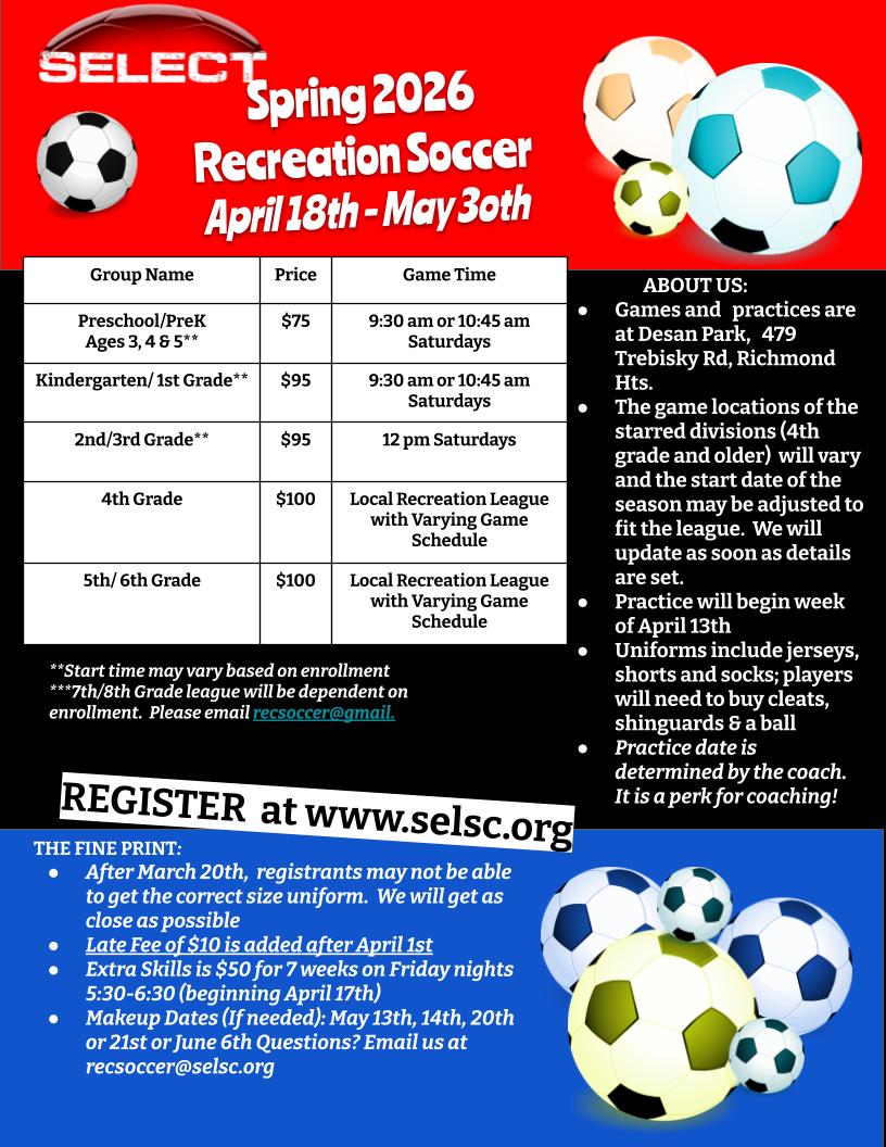 Games and practices are at Desan Park, 479 Trebisky Rd, Richmond Hts.